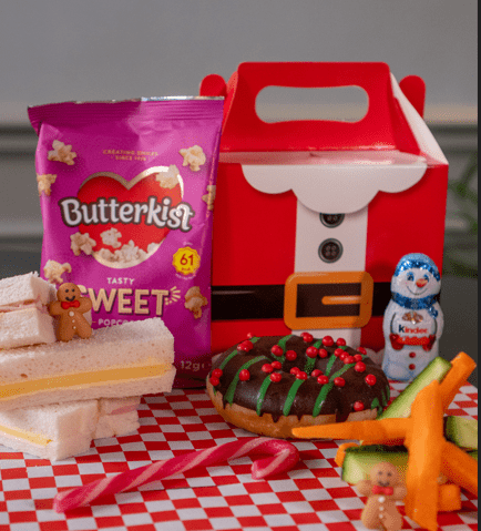 And for younger audience members, a special festive designed box featuring a tasty sandwich, crunchy vegetable sticks, mini popcorn, iced doughnut and a chocolate snowman.